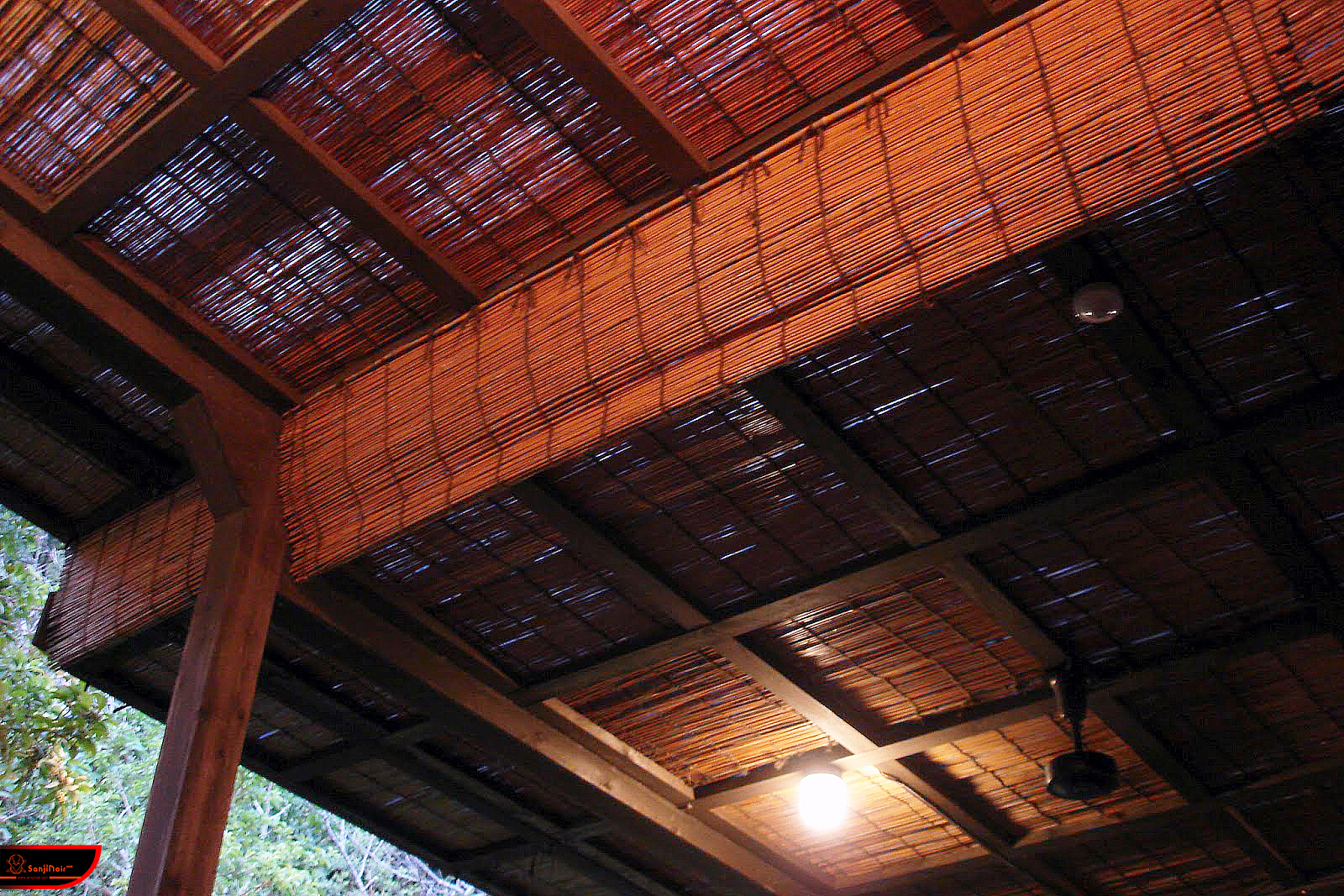 頂上則覆蓋著竹簾,透著一絲絲的夜幕柔光。好啦好啦~吃飯吃飯~~由於我們是晚餐用膳,價格雖然有些驚人(@@),但白天推出的餐點和夜晚可是有些不同唷!