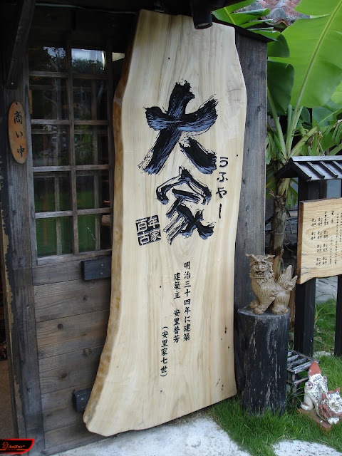 百年古家-大家房屋入口的招牌,原木切割下又留有著「大家」的氣派。