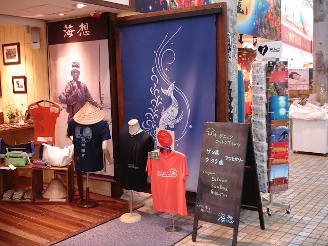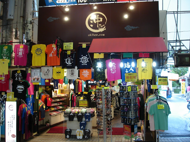 在第一牧志公設市場,隨處可見賣Tee、衣物的店,設計上大都有著濃厚的沖繩風格。有些價格便宜但中國製造材質差強人意;但有些雖然折合台幣得要七八百元以上,但不論材質、設計都很值得入手,質料不僅比台灣同價位的Tee來得好,還標榜是當地生產製造的。