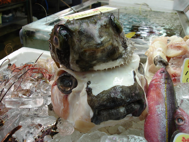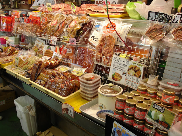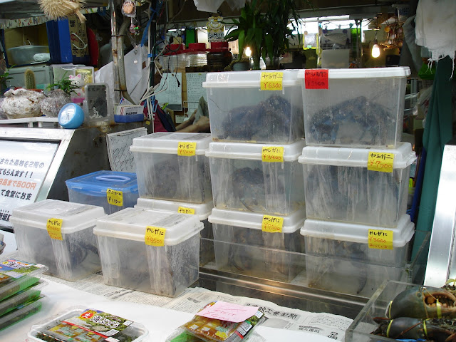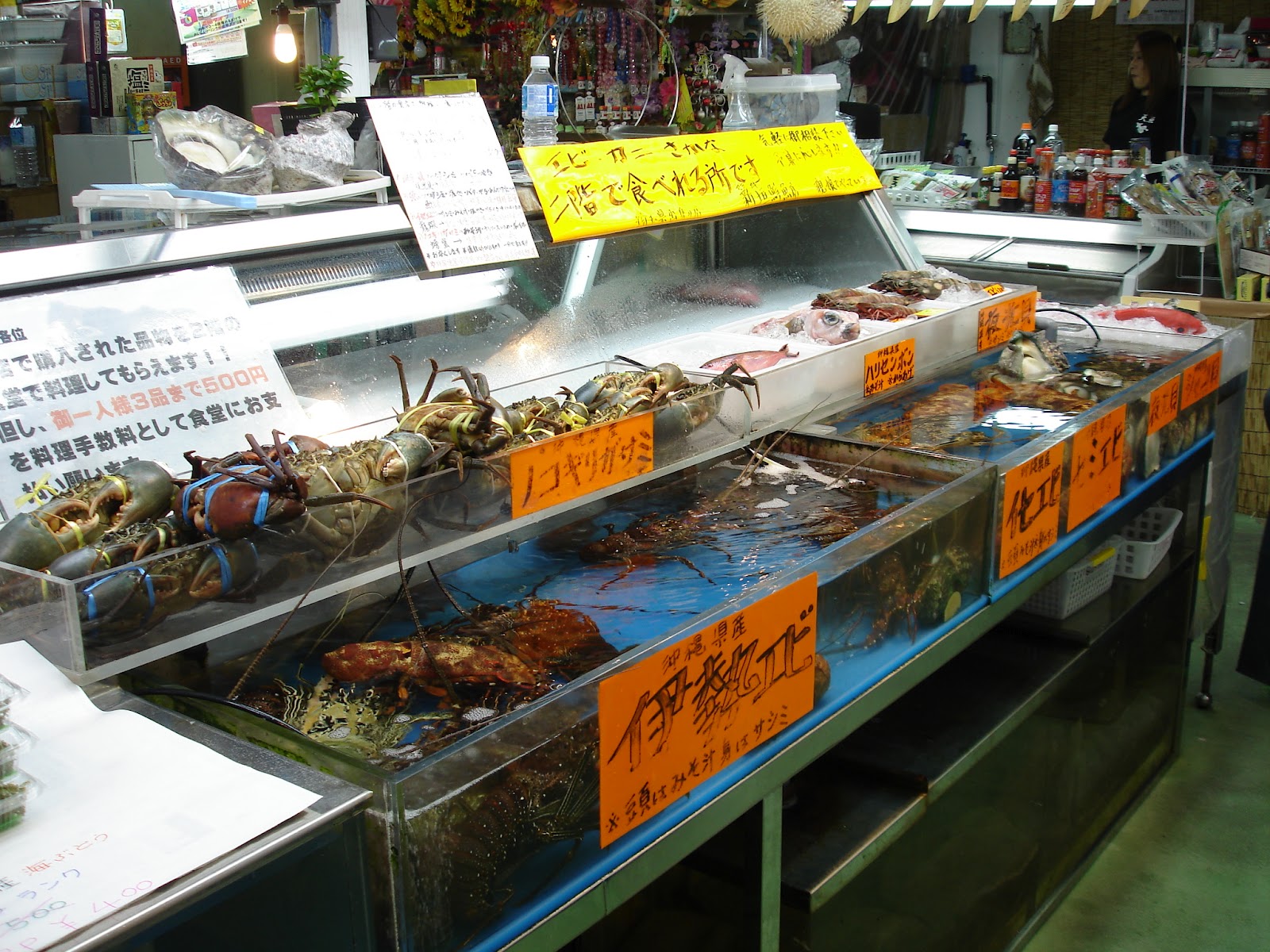 但這裡可謂是種類繁多,雖然不及著名的築地漁市那樣豐富,可也有不少當地生鮮值得大快朵頤一番的~
