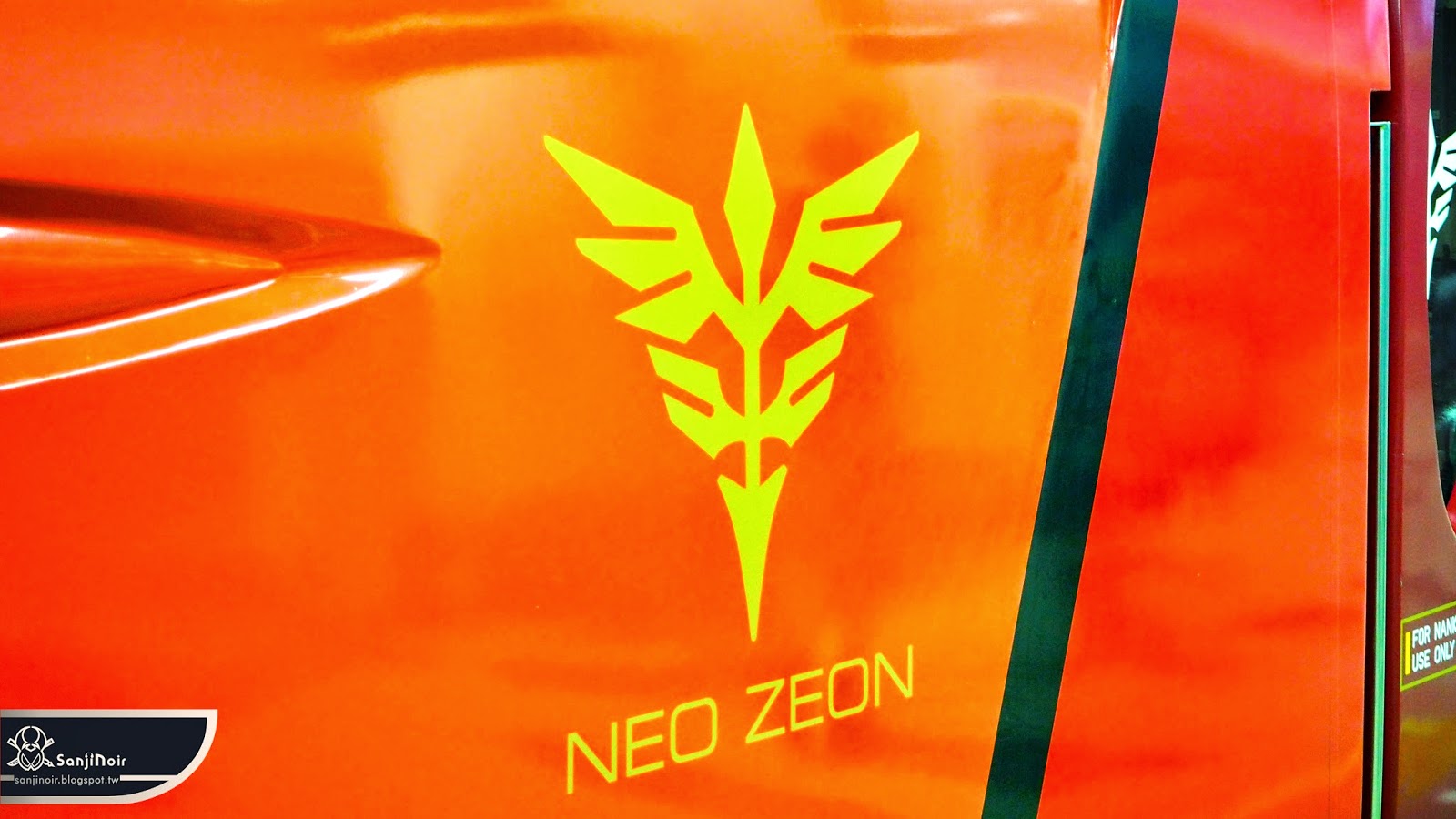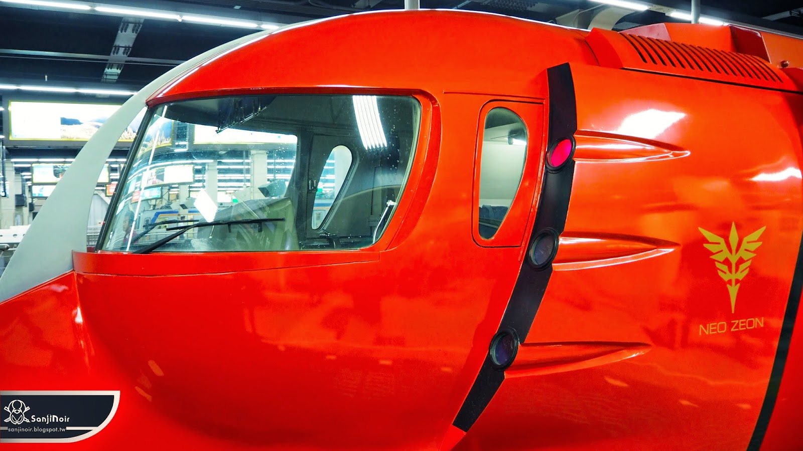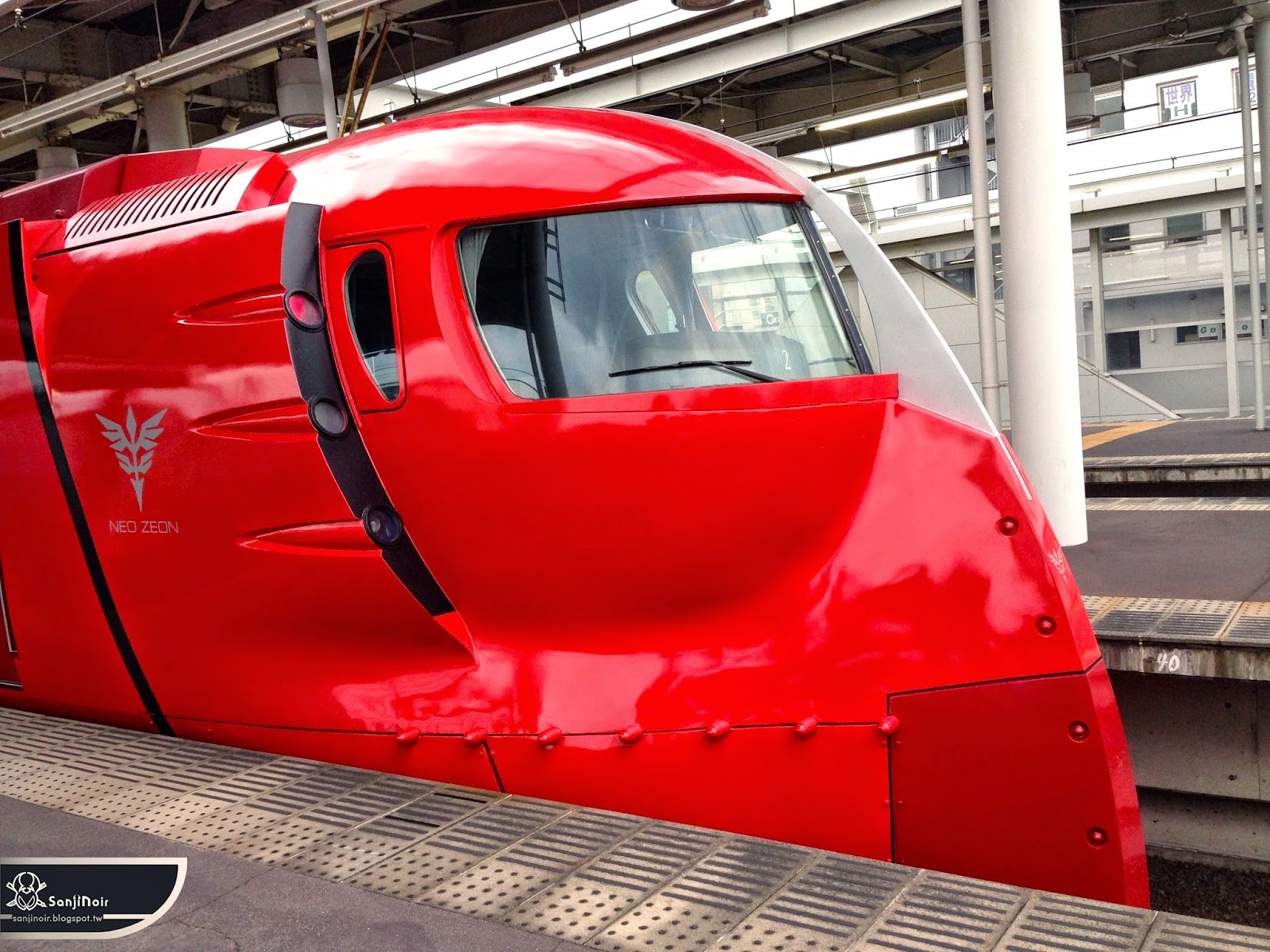 車頭中央立著銀色刀刃,看起來就像武士舉著上段直衝而來。中央還很精緻地有著新吉翁軍的標誌,只能說鋼彈動漫能和大眾交通如此完美結合,根本就是最經典的痛車了吧XD