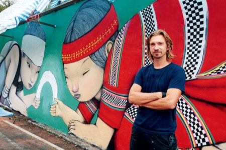 沒錯,是柒先生(Julien Seth Malland),這個名字的由來主要是因為他的中間名Seth與法文的sept是同音,所以直接取為柒先生。而他這次受立邦油漆的活動邀請,來到台灣進行牆面彩繪的活動。