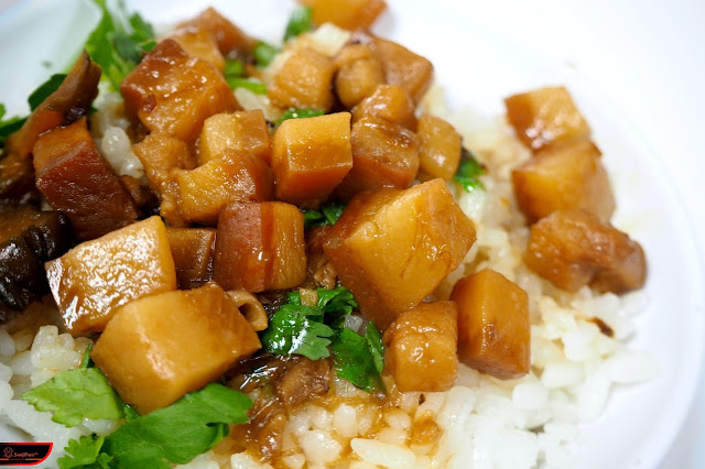 另外也不能忘記配上肥肉好似果凍口感的肉燥飯,肥滋滋的脂肪肉丁和滷汁不僅充分滋潤了米飯,滲透到略黏但顆粒分明的飯粒中,成為魚丸湯最好搭配的同時就算獨立品嚐也數乎上乘佳作,集結成飽食度超高的早餐組合!!!
