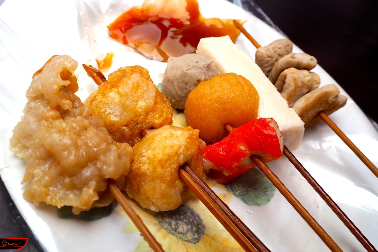 吃完永記虱目魚丸、往前走幾步後,一旁便是以便宜划算的台灣黑輪了。位於開山路52巷口的這家店最有名的便是主打1串2元的黑輪,隨手抓一把也不至於吃到太痛就是。