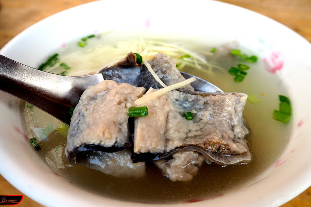 比起吃上魚肚粥外加早上在永記領教過的魚丸湯,來到福生小食店個人倒是更享受吃這碗魚皮湯,尤其片片魚皮上還沾著些許魚肉,並做出類似魚焿般的口感,將魚皮湯昇華到另一種軟而些許彈牙的境界。雖然湯頭比不上前篇鱸魚湯的鮮美,但當把重點放在魚皮上的時候就更能接受那略顯清雅的滋味。