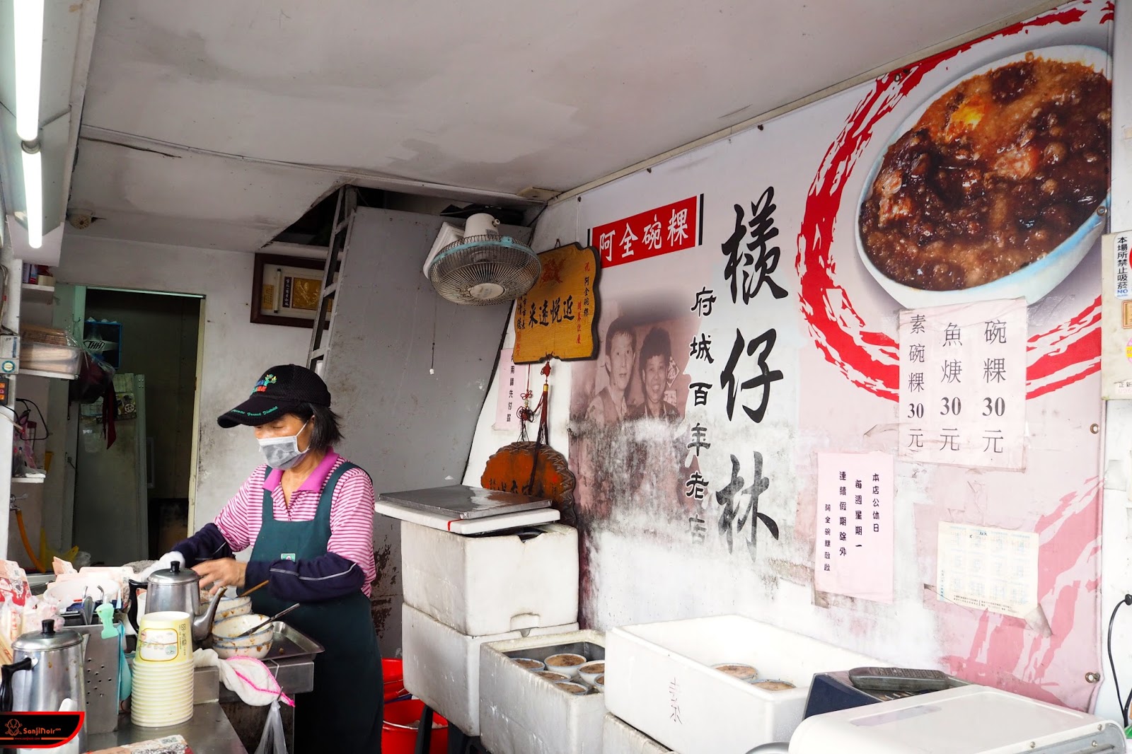 日治時期開業至今的檨仔林阿全碗粿,在台南也已經是百年老店的等級。由於製作過程有添加醬油膏,所以顏色較深、屬於所謂的黑碗粿一類,加上裡頭還有著火燒蝦、香菇、豬瘦肉、蛋黃等餡料,整碗不僅豐富得熱熱鬧鬧,味道上還相當契合不衝突,口感既綿密又有彈性,真不愧是在地好滋味。