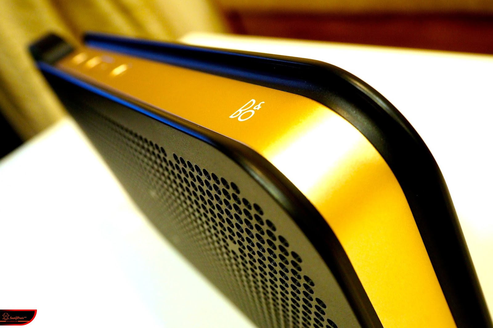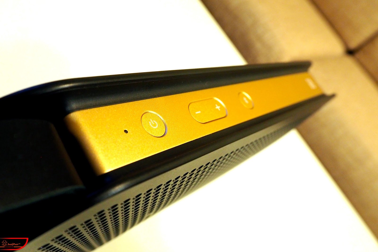 然除了操作容易之外,只能說在開箱的時候有發現B&O PLAY BeoPlay A2藍牙喇叭的機身陽極處理相當到位,以這款黑金配色的特別版為例,選擇的顏色不僅相當適切且富有光澤外手感也相當細膩,尤其按鍵的部份更是連邊緣處評價上也是可圈可點。