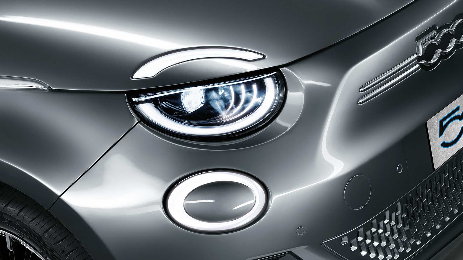500的外型設計完全不顯老,因此新車型沒有捨棄的必要,不過在外表上仍有些許地方不同,像是較粗的車頂支柱、稍加流線的車體、新的LED燈組、以及修改過的車頭造型,另外,設計師將原本位於車頭的Fiat廠徽移除,換成大而明顯的500字樣,車尾的造型則更加圓潤而立體,為了強調此車的零排放特色,尾燈的造型能讓人看出「E」字樣,表示電動車。