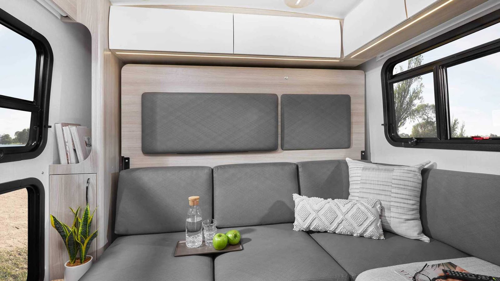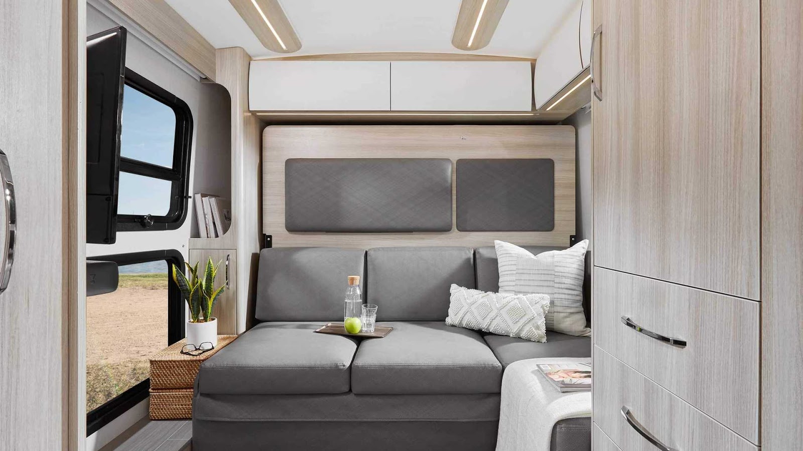 Wonder Rear Lounge不只是動力強悍而已,還提供了寬敞的內部空間與獨特的雙區域布局,更厲害的是,休憩區還設置了從地板延伸到天花板的大面積窗戶,白天的時候可坐在組合式沙發享受風景,晚上的時候只要從牆邊拉下墨菲床,立刻就有現成的睡眠區可使用。