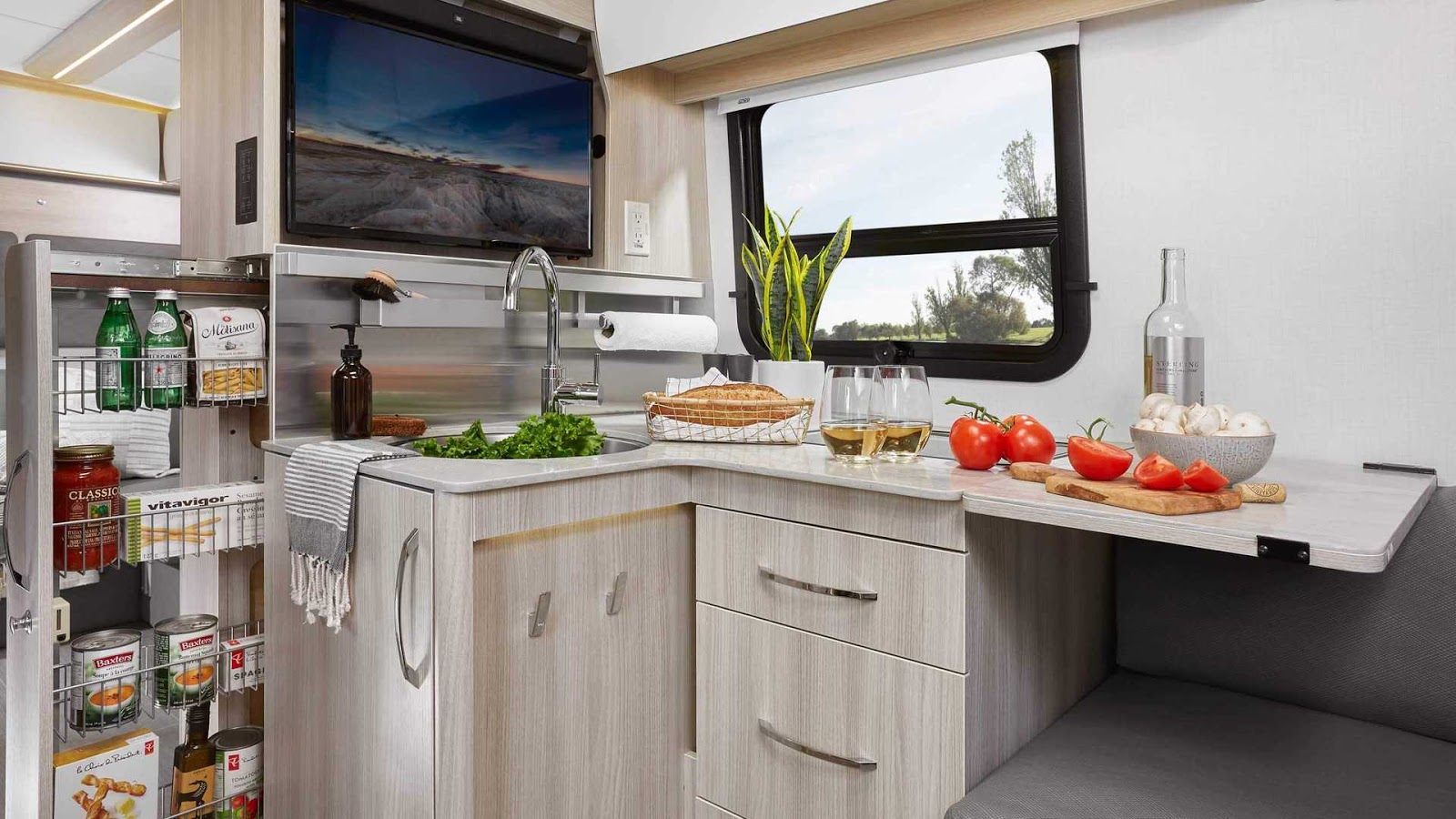 Leisure Travel Vans在去年的RVX露營車展中首次帶來了Wonder Rear Lounge概念車屋,不過當時他們選擇的底盤是較昂貴的Mercedes-Benz Sprinter,雖然正式推出之後換成了Transit,但Leisure Travel Vans在布局方面並沒有太大的改動。