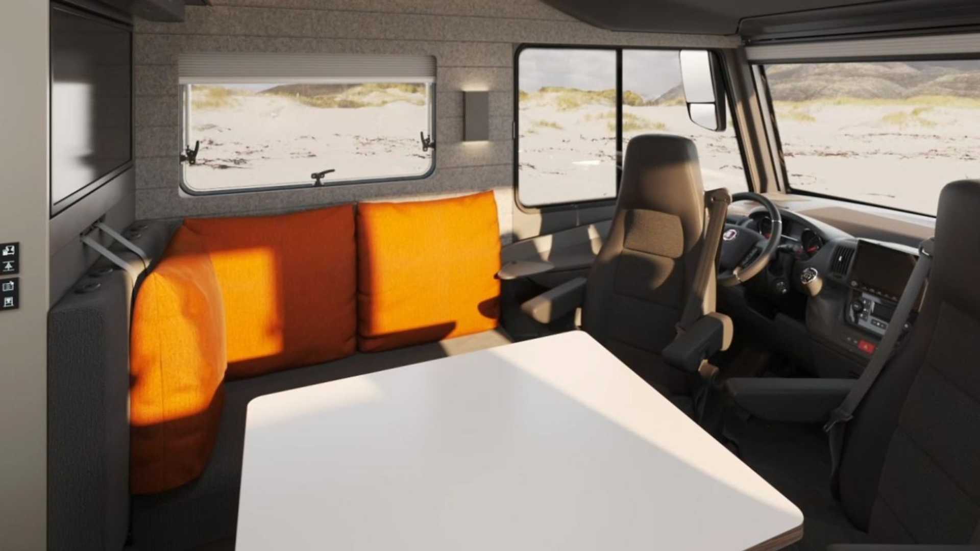 iSmove的外觀到沒有太大的話題性,基本上就是一輛以Fiat Ducato小巴為基礎所改造而成的露營車,車內才是重點,首先可看到收放式牆面與櫥櫃,且這個收放的機能是以電動機構所進行的。