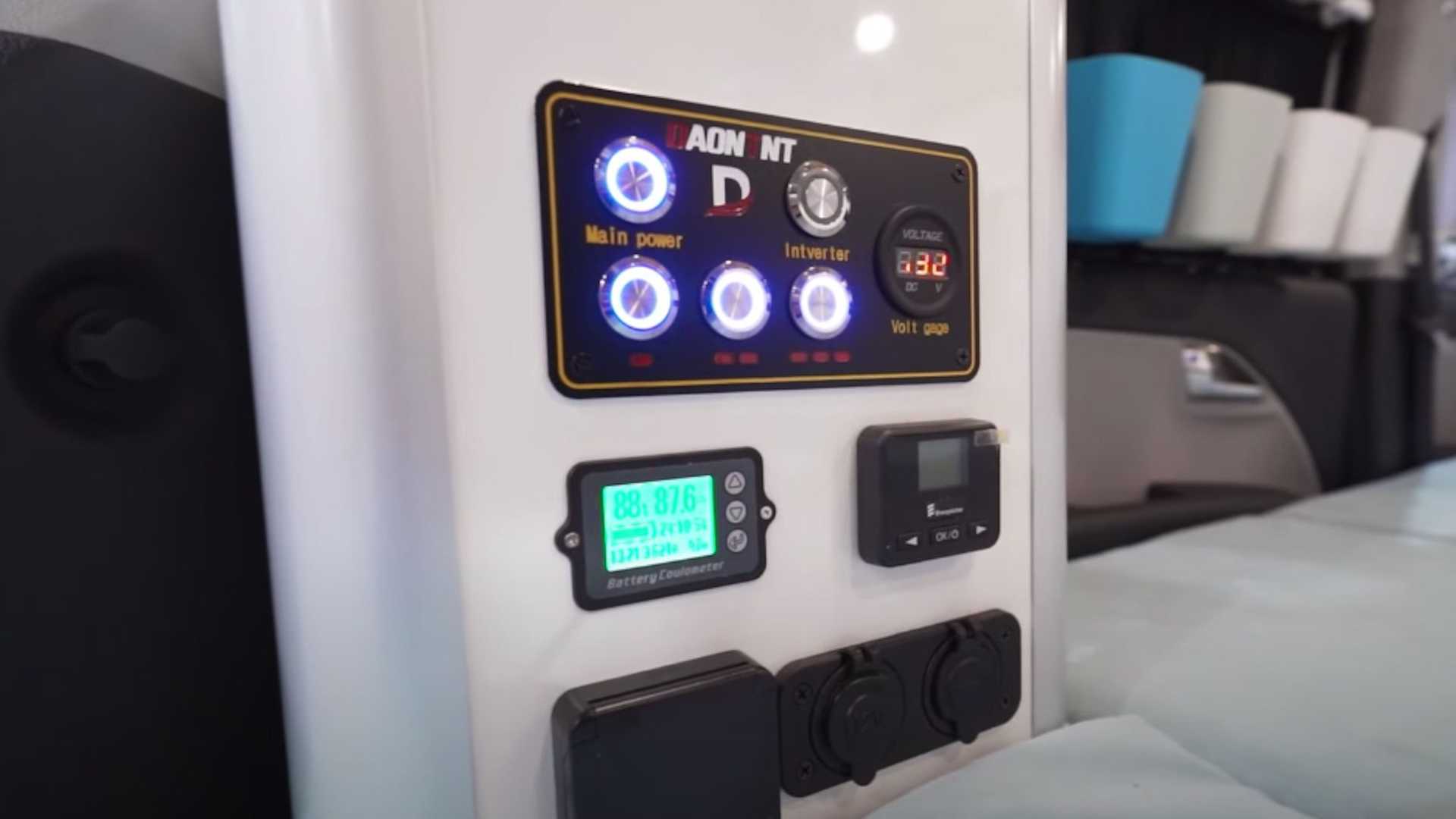 Ravy的配備頗為齊全,車上有控制中心,備有100Ah的電池組,提供220V、12V、以及USB的充電插孔,也有暖氣設備來維持車內的室溫,倒是座椅比較少一點,把前排座椅直立之後還是沒辦法放置適當的餐桌與椅子,不過可把床鋪作為沙發使用。