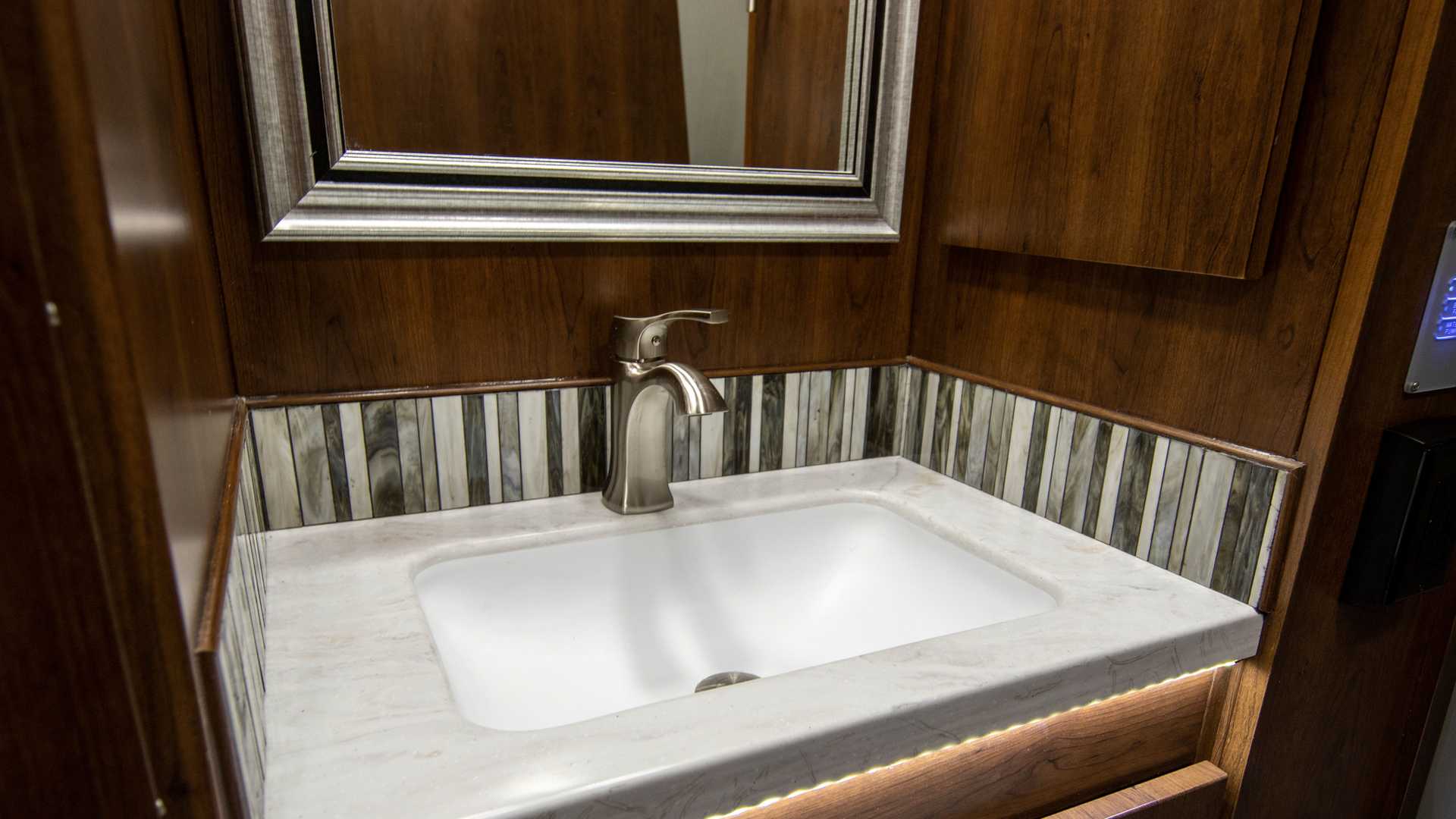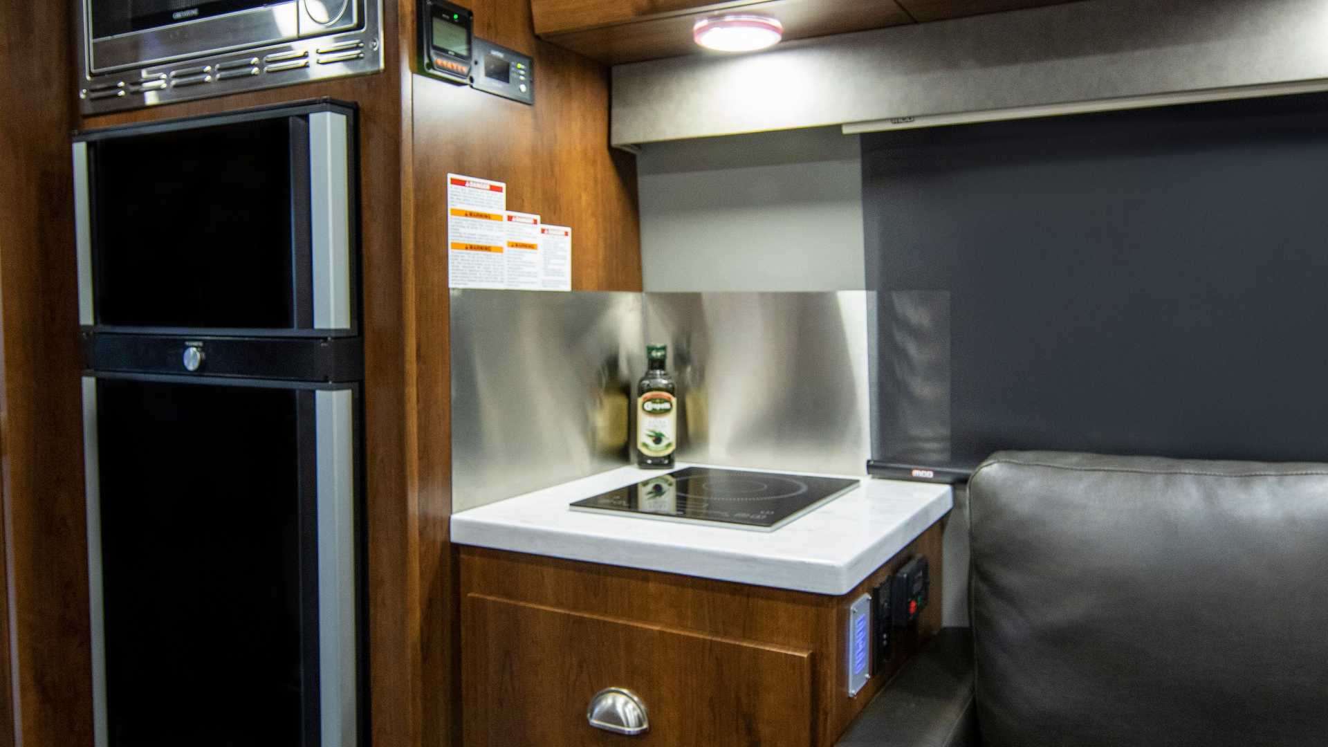車長約 7.23 公尺、面積約 18.6 平方公尺,Summit 在尺碼上比起舊款的 Chinook 車屋要來得大,不過內裝依然維持著緊湊的布局與完備的功能,中央有兩張對坐的沙發區,看起來是個開趴踢的好地方,這些沙發摺疊起來後則會變成一張加大雙人床鋪,除了充足的睡眠空間之外,Summit 的車尾還設有分離式的淋浴間與浴室,以往 Chinook 的車屋因為空間過小,只能配置濕式浴室,說到水系統,車上可攜帶 113 公升的清水、91 公升的廢水、以及 91 公升的排泄物廢水。