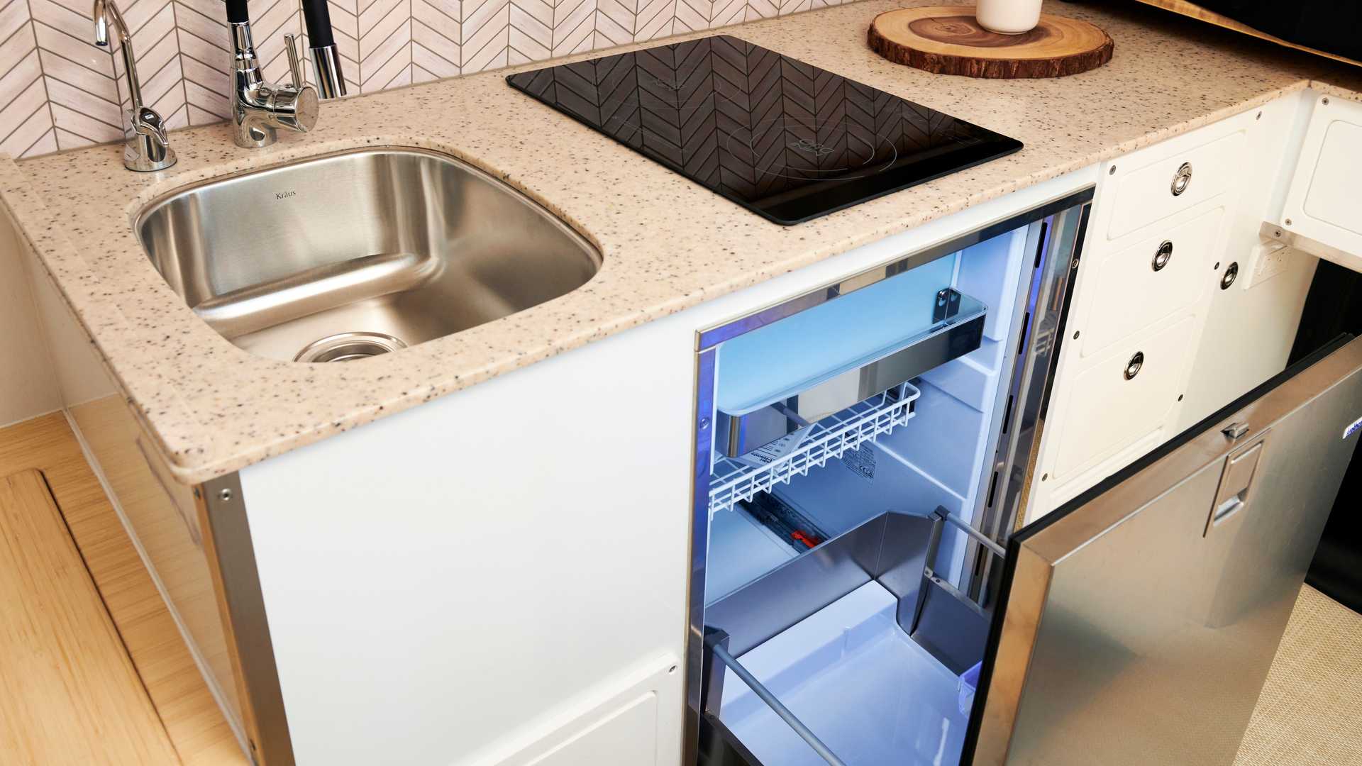 廚房設備含有水槽、瓦斯爐、以及冰箱,旁邊也備有廁所,此外,EarthCruiser 提供方便的操作控制器,供客戶操作各項重要的配備,包括升降車頂、或者監控電路系統用量等等。